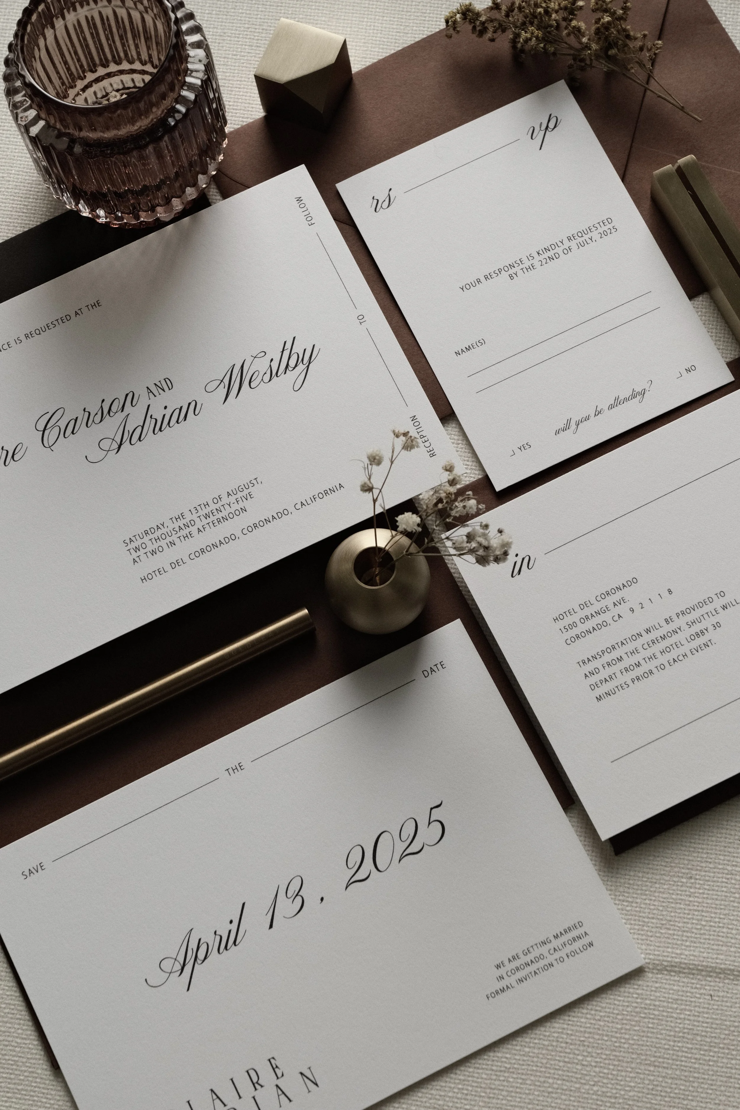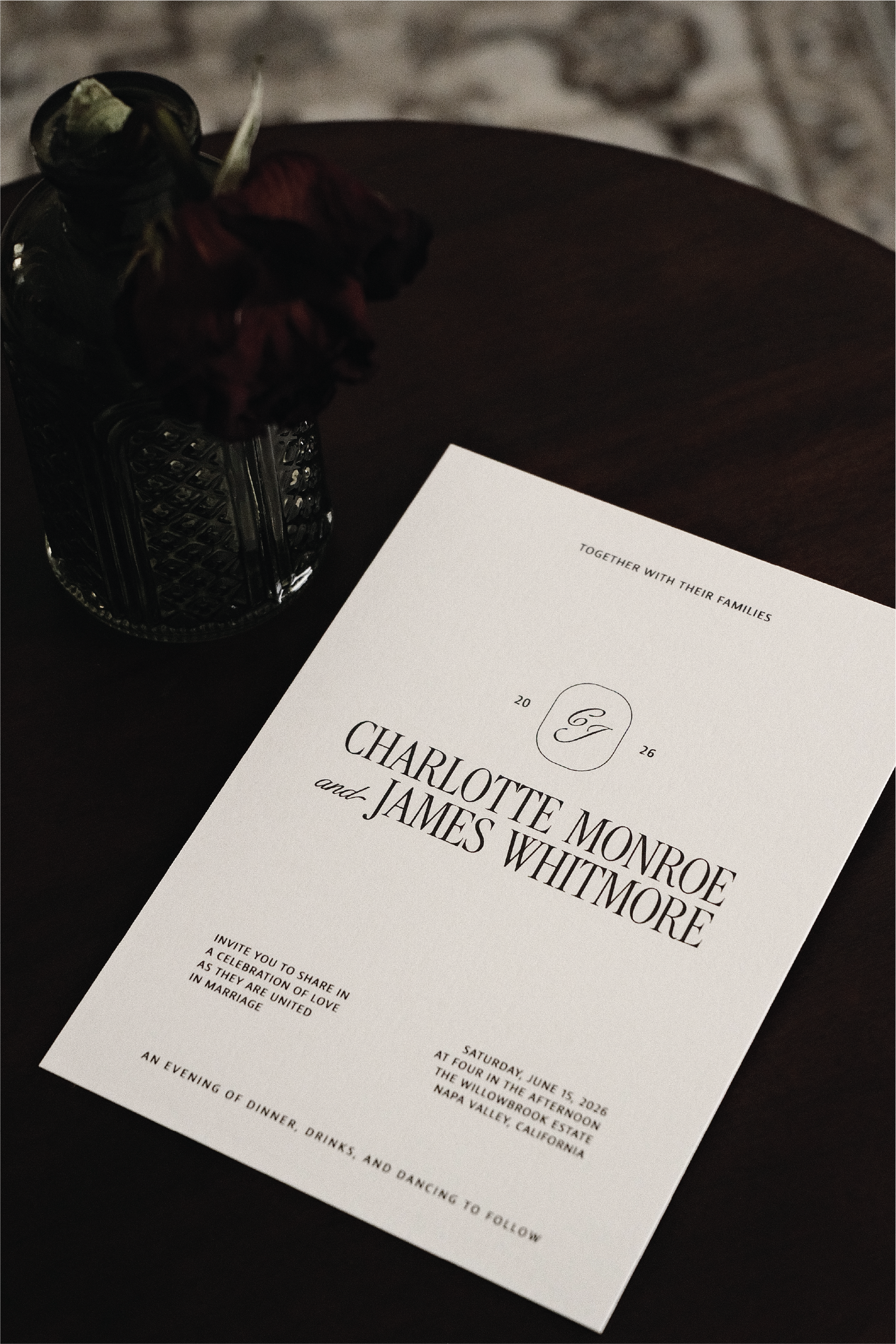 We offer semi-custom wedding invitations that are thoughtfully crafted, effortlessly timeless, and tailored to set the perfect tone for your celebration.