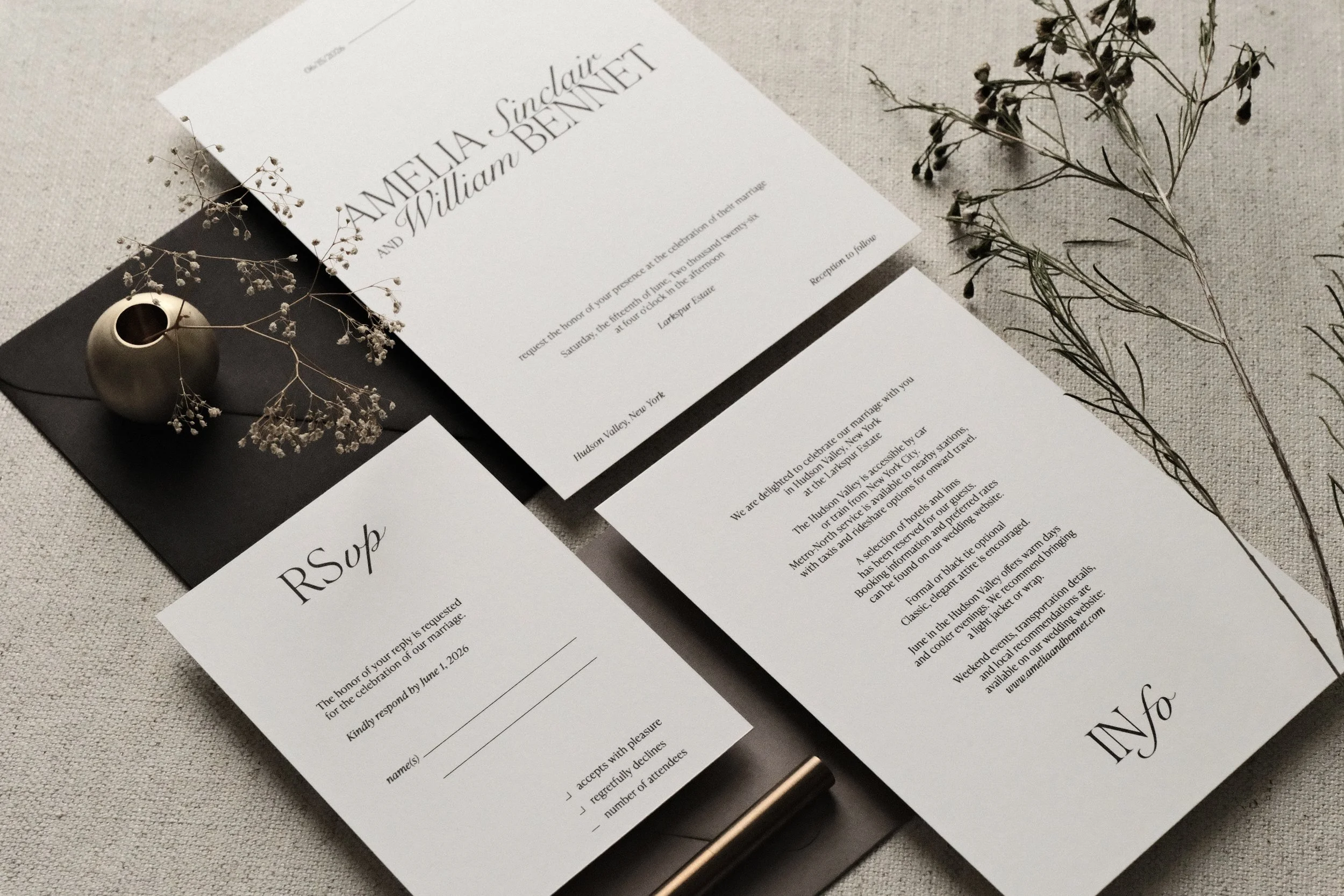 Muted Slate is a small boutique design studio specializing in wedding invitations. We create heirloom wedding invitations defined by classic serif typography, structured layouts, and modern restraint. Designed for timeless, formal celebrations — from black tie estates to refined city weddings. Rooted in quiet luxury and thoughtful design, giving couples a meaningful way to announce their special day. At the heart of our studio is a simple belief: every love story deserves to be beautifully told.